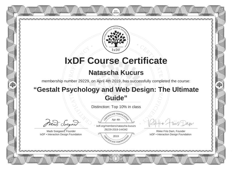 Natascha Kucurs's IxDF Course Certificate: Gestalt Psychology and Web Design: The Ultimate Guide