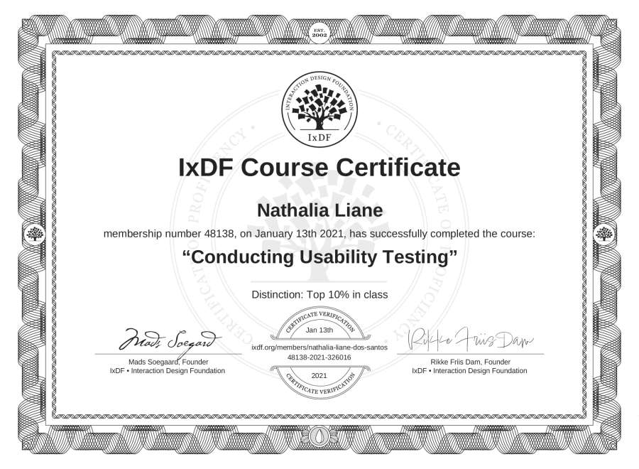 Nathalia Liane's IxDF Course Certificate: Conducting Usability Testing