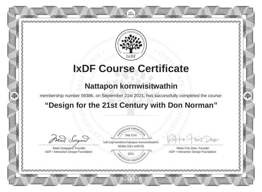 Nattapon kornwisitwathin's IxDF Course Certificate: Design for the 21st Century with Don Norman