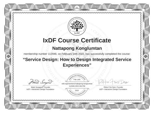 IxDF Course Certificates are awarded to Nattapong Konglumtan in formal recognition of their coursework surpassing the rigorous benchmarks of exceptional performance established by the IxDF Educational Codex.
