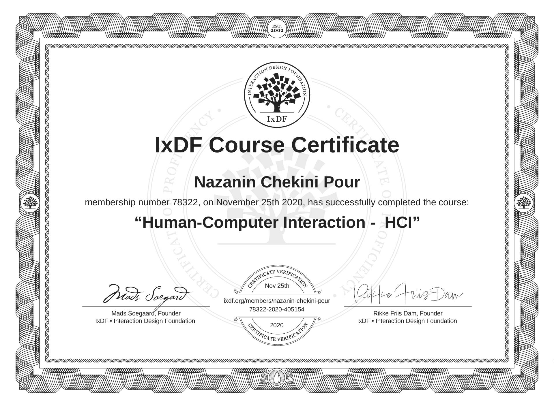 Nazanin Chekini Pour's IxDF Course Certificate: Human-Computer Interaction - HCI