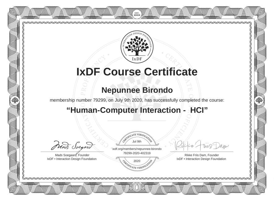 Nepunnee Birondo's IxDF Course Certificate: Human-Computer Interaction - HCI