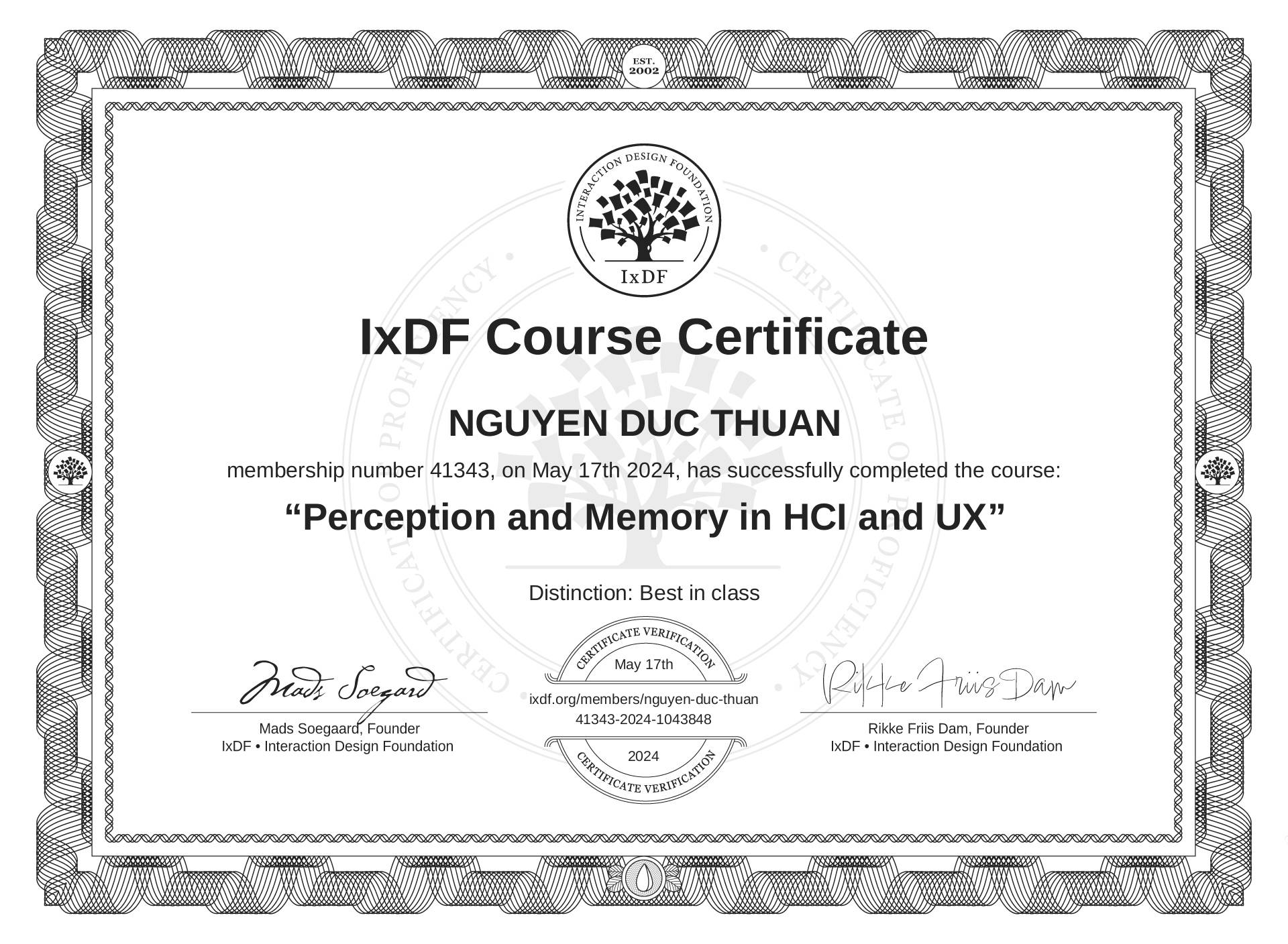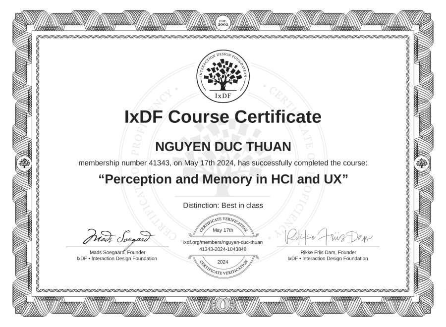 NGUYEN DUC THUAN's IxDF Course Certificate: Perception and Memory in HCI and UX