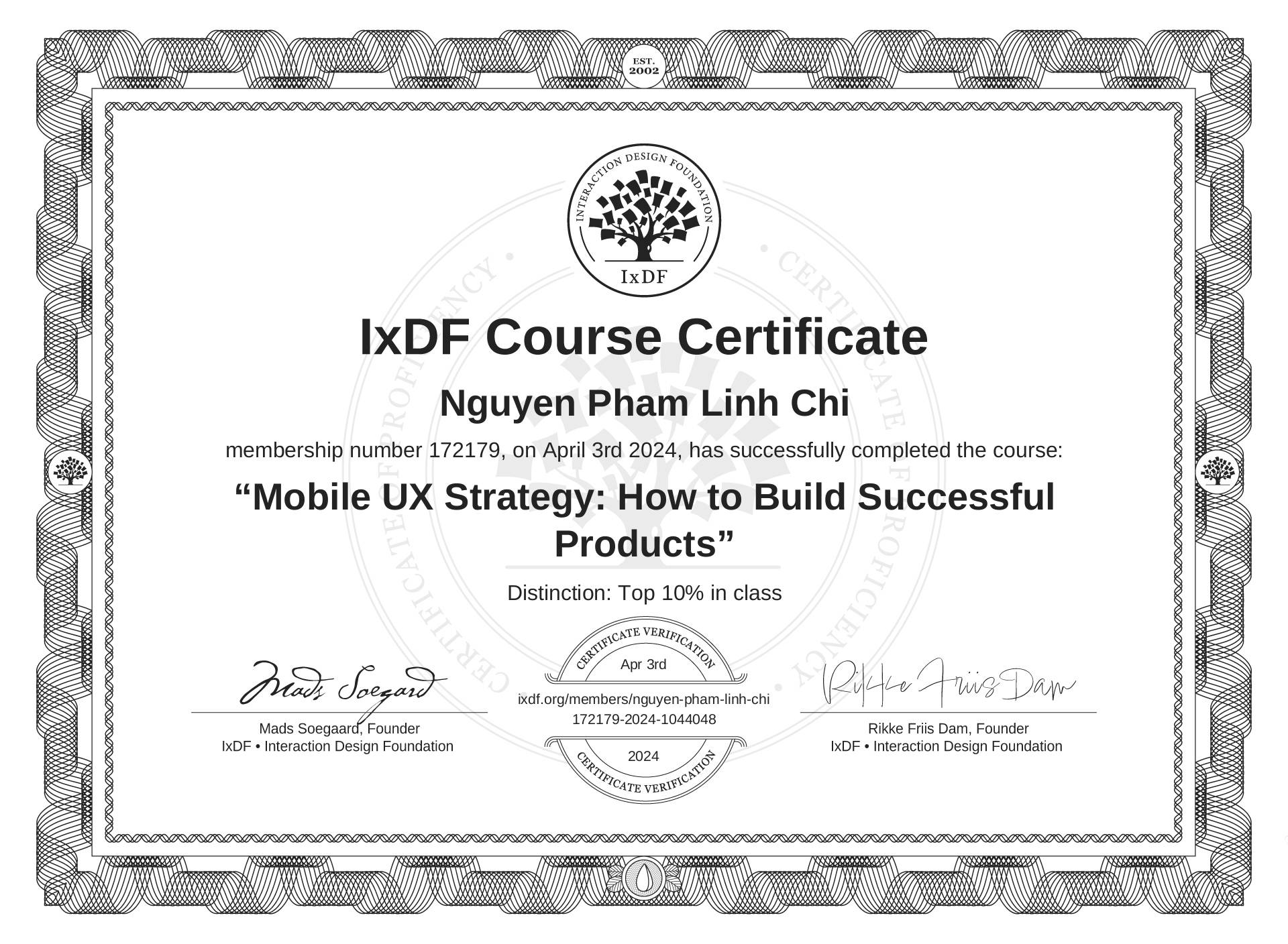 Nguyen Pham Linh Chi's IxDF Course Certificate: Mobile UX Strategy: How to Build Successful Products