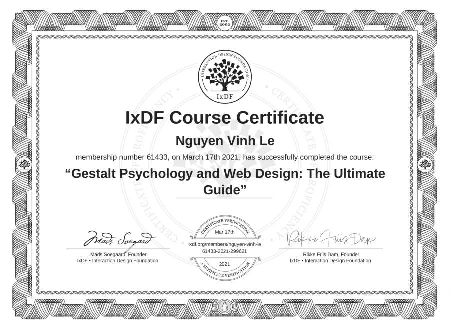 Nguyen Vinh Le's IxDF Course Certificate: Gestalt Psychology and Web Design: The Ultimate Guide