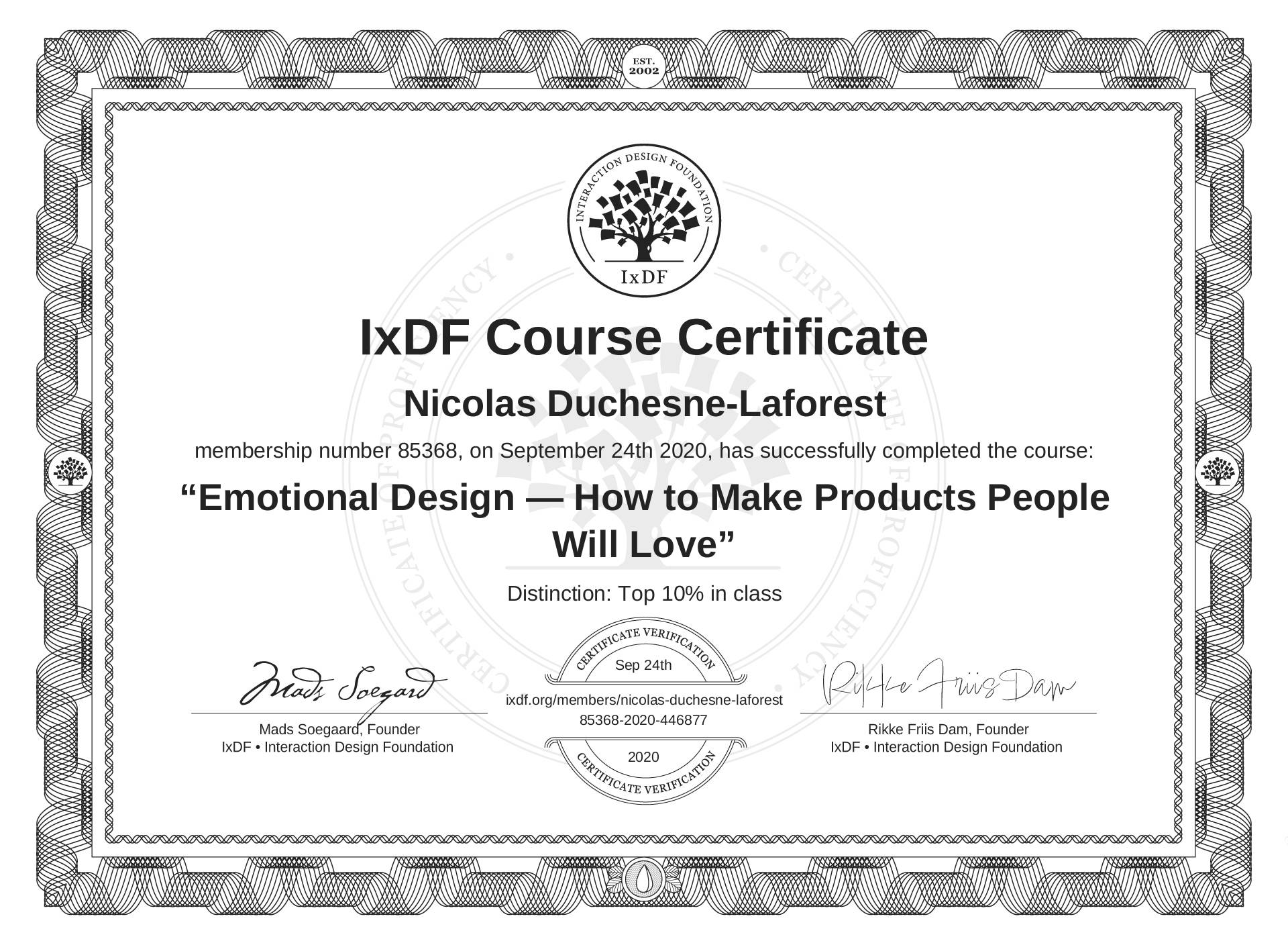 Nicolas Duchesne-Laforest's IxDF Course Certificate: Emotional Design — How to Make Products People Will Love