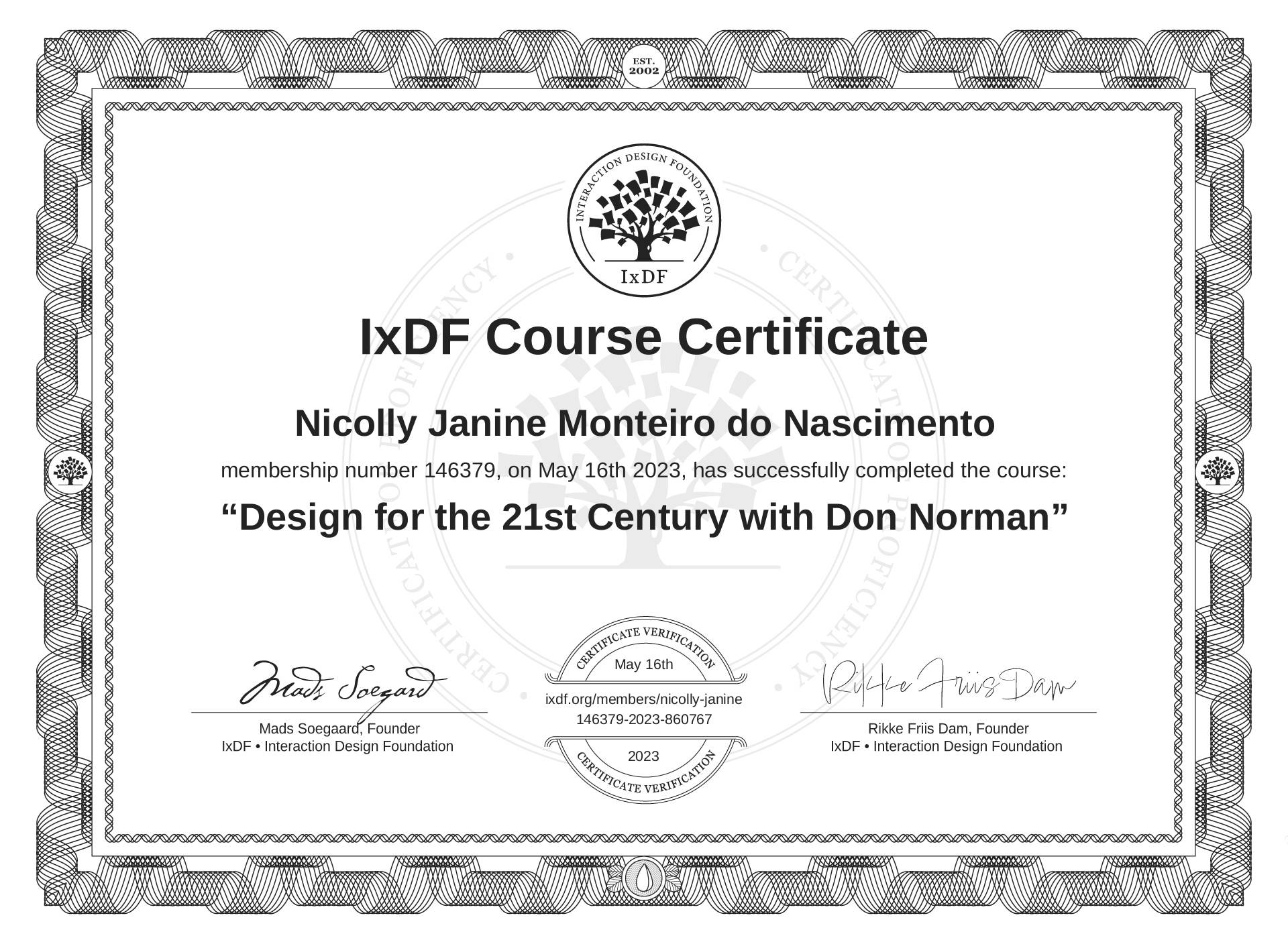 Nicolly Janine Monteiro do Nascimento's IxDF Course Certificate: Design for the 21st Century with Don Norman