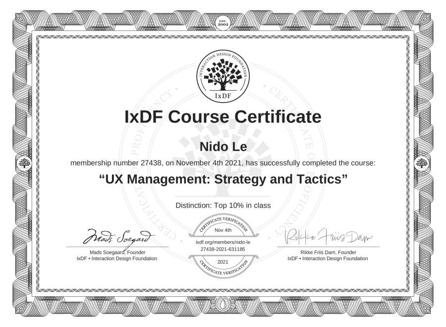 Nido Le's IxDF Course Certificate: UX Management: Strategy and Tactics