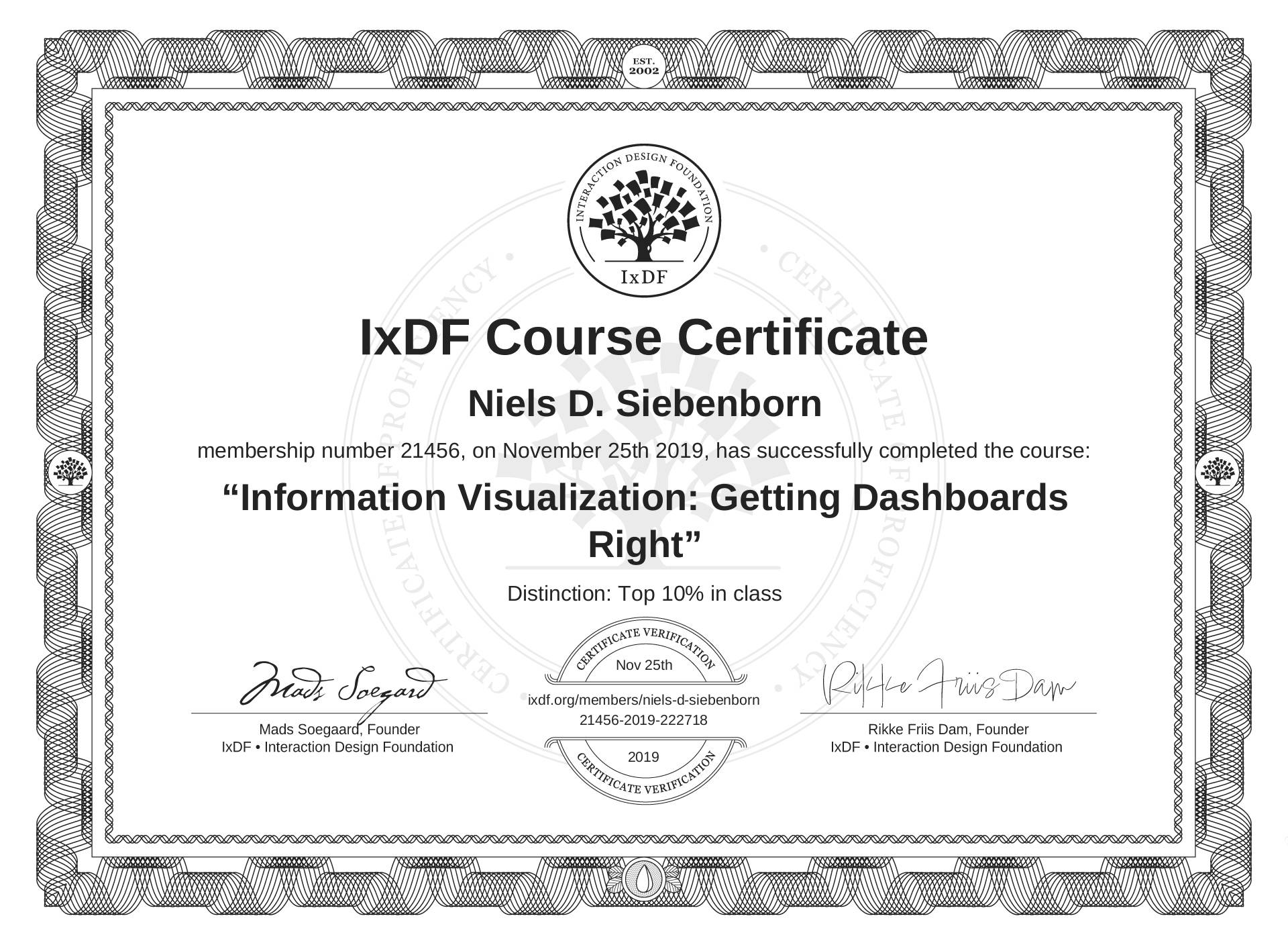 Niels D. Siebenborn's IxDF Course Certificate: Information Visualization: Getting Dashboards Right