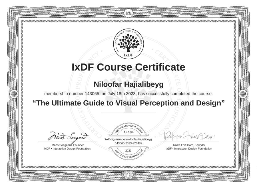 Niloofar Hajialibeyg's IxDF Course Certificate: The Ultimate Guide to Visual Perception and Design