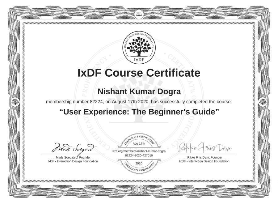 Nishant Kumar Dogra's IxDF Course Certificate: User Experience: The Beginner's Guide