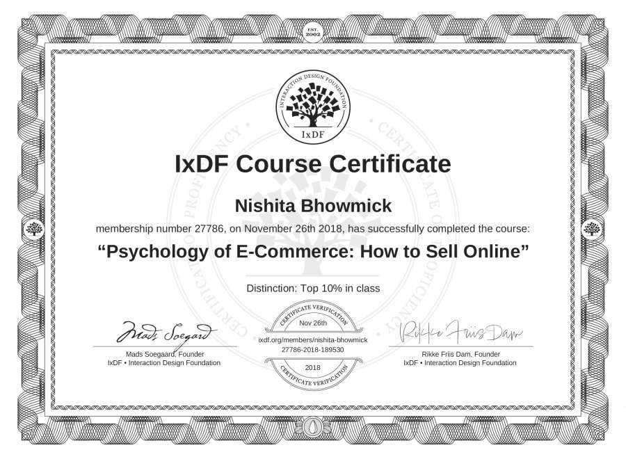 Nishita Bhowmick's IxDF Course Certificate: Psychology of E-Commerce: How to Sell Online