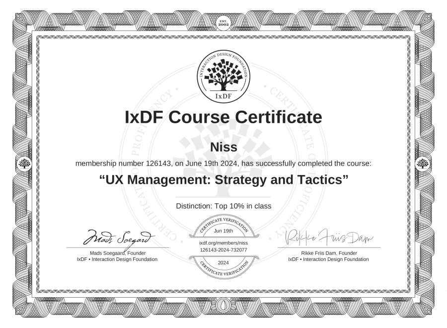 Niss's IxDF Course Certificate: UX Management: Strategy and Tactics