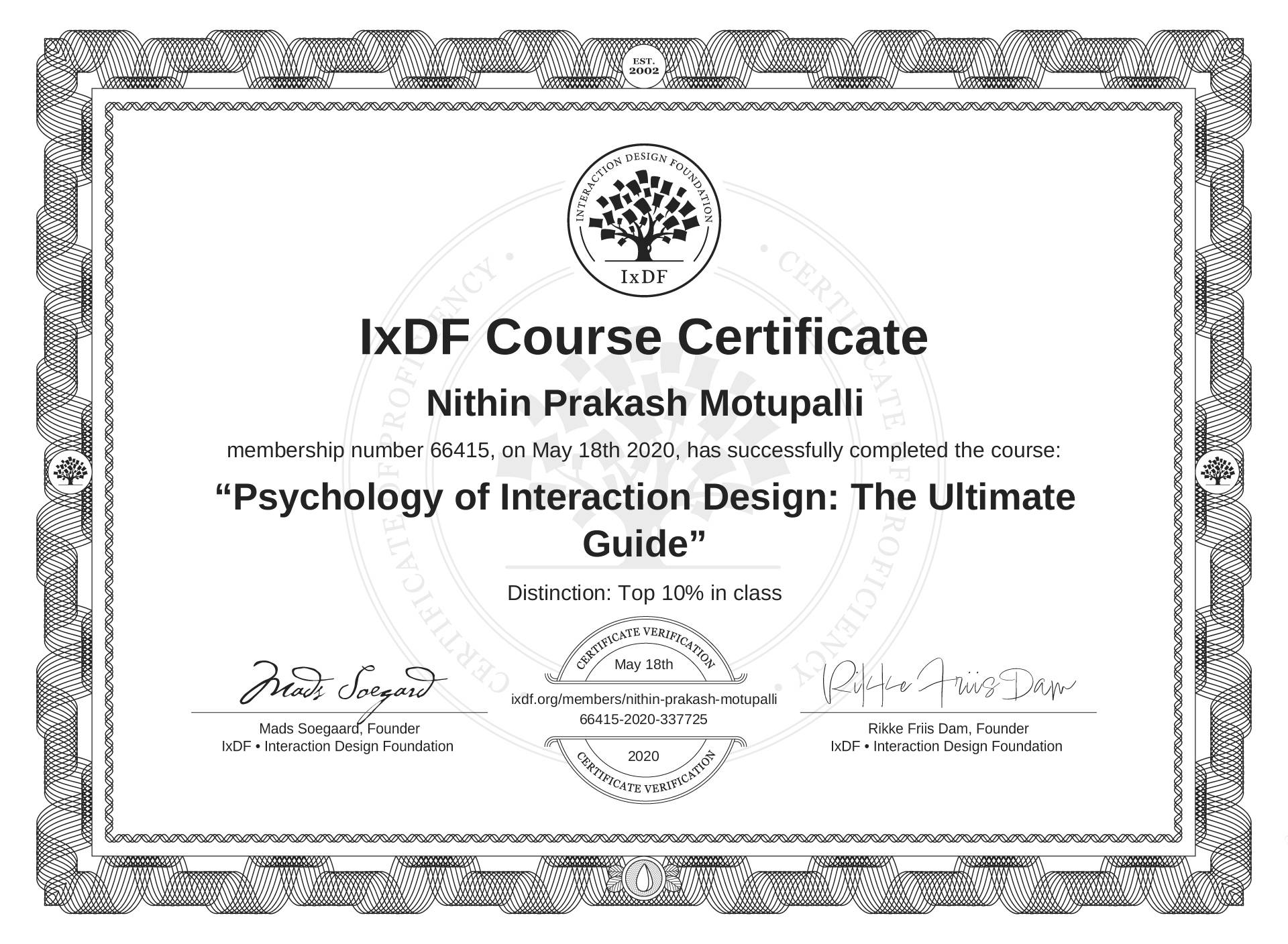 Nithin Prakash Motupalli's IxDF Course Certificate: Psychology of Interaction Design: The Ultimate Guide