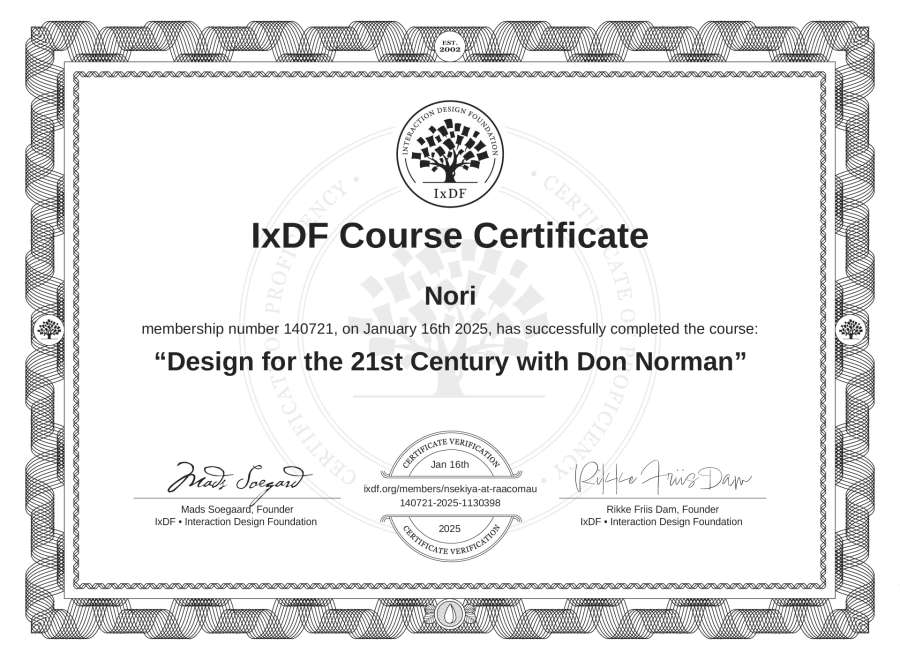 Nori's IxDF Course Certificate: Design for the 21st Century with Don Norman