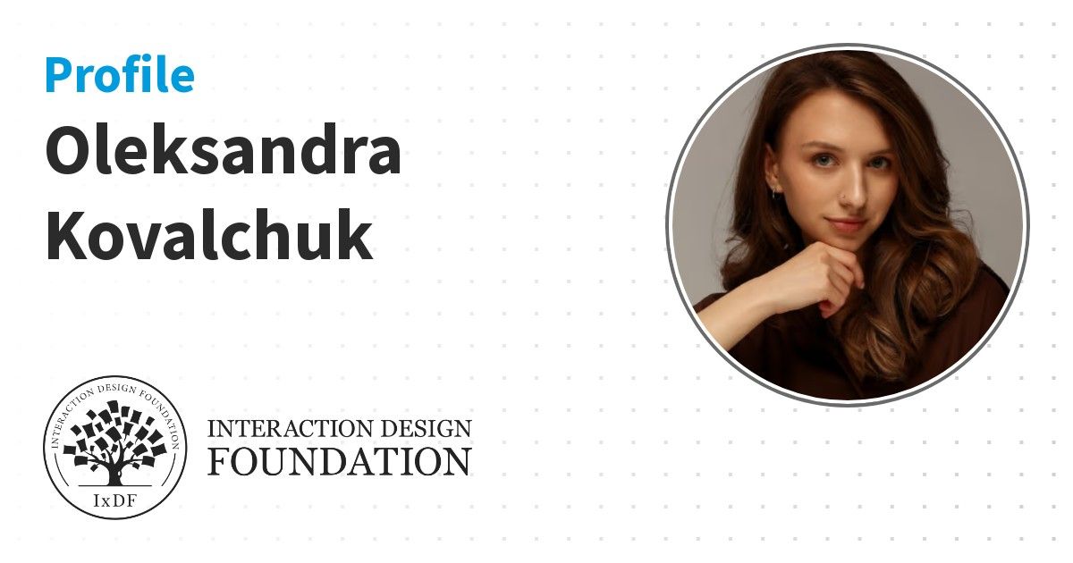 IxDF Course Certificates are awarded to Oleksandra Kovalchuk in formal recognition of their coursework surpassing the rigorous benchmarks of exceptional performance established by the IxDF Educational Codex.