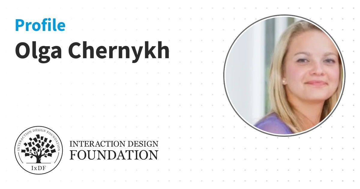 IxDF Course Certificates are awarded to Olga Chernykh in formal recognition of their coursework surpassing the rigorous benchmarks of exceptional performance established by the IxDF Educational Codex.