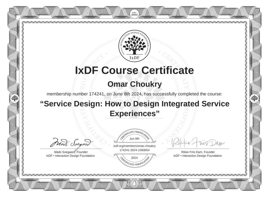 Omar Choukry's IxDF Course Certificate: Service Design: How to Design Integrated Service Experiences