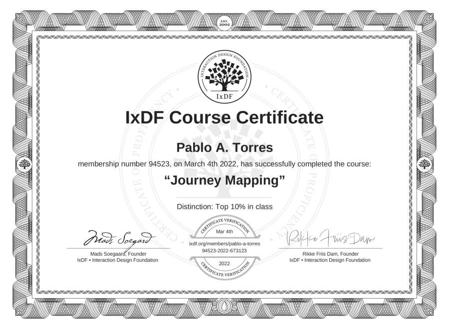 Pablo A. Torres's IxDF Course Certificate: Journey Mapping