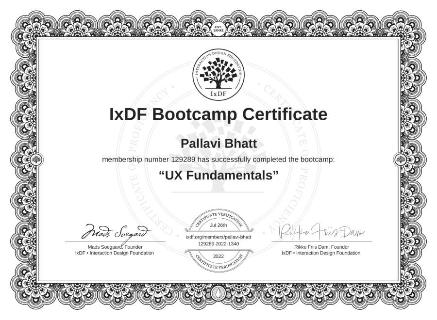 Pallavi Bhatt's Bootcamp Certificate: UX Fundamentals
