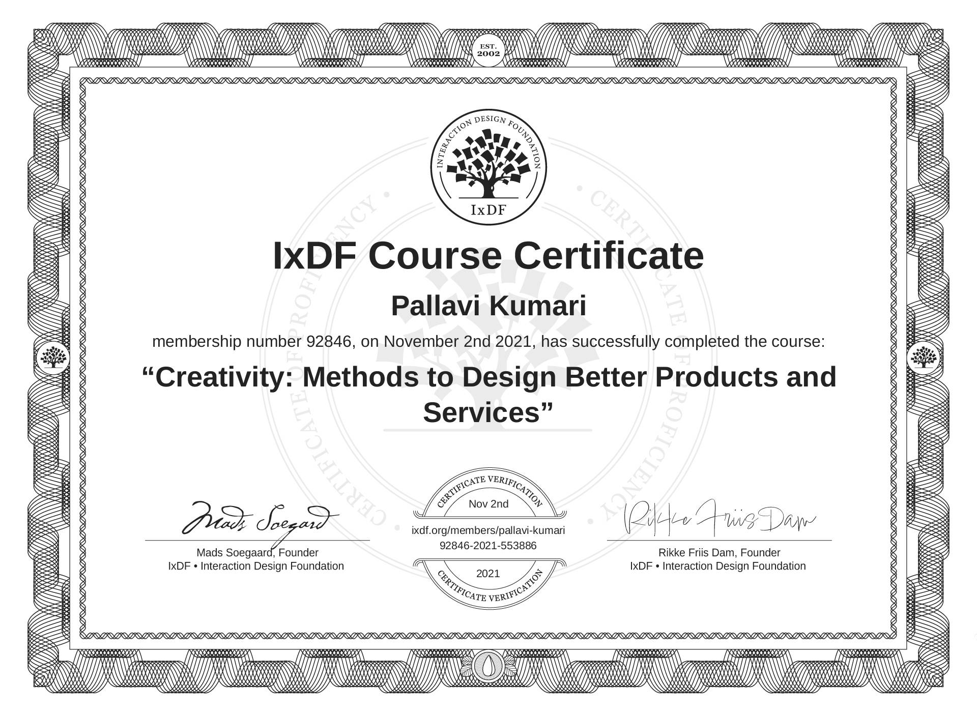 Pallavi Kumari's IxDF Course Certificate: Creativity: Methods to Design Better Products and Services