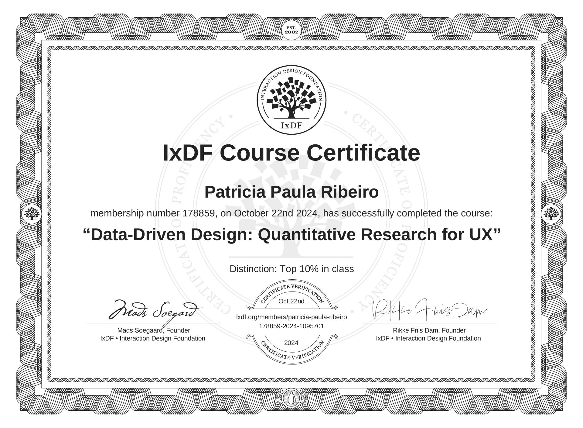 Patricia Paula Ribeiro's IxDF Course Certificate: Data-Driven Design: Quantitative Research for UX