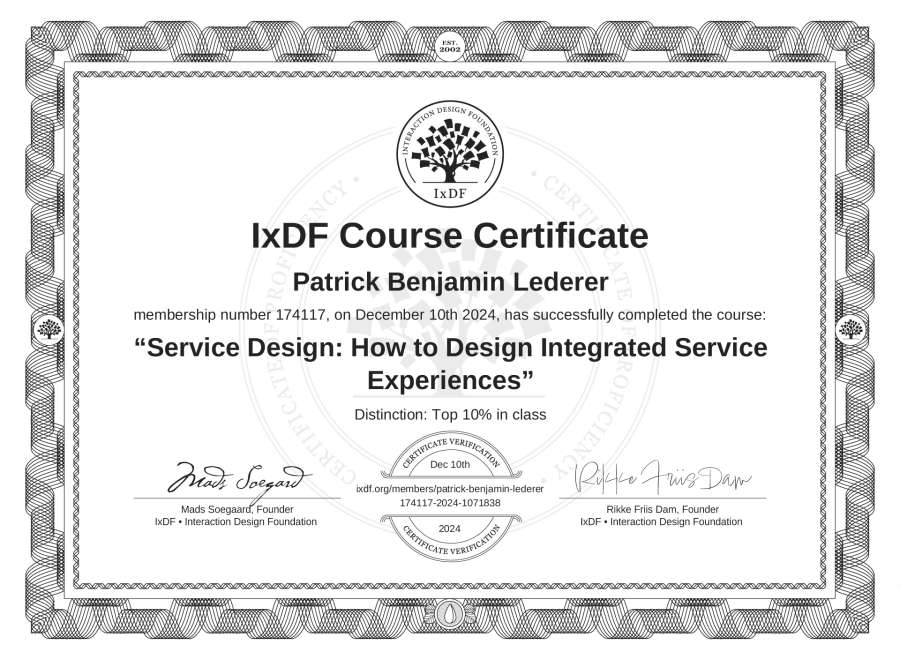 Patrick Benjamin Lederer's IxDF Course Certificate: Service Design: How to Design Integrated Service Experiences