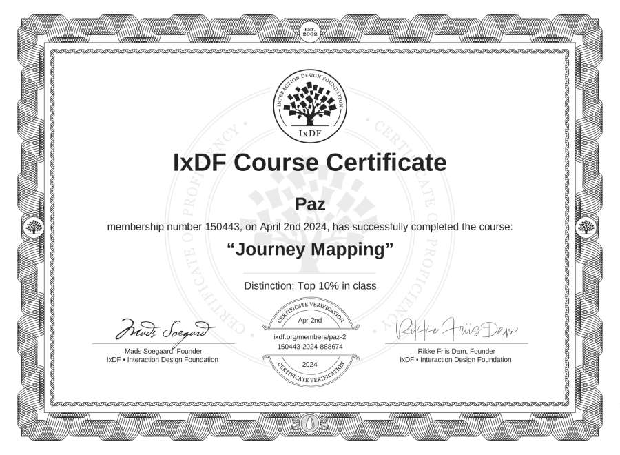 Paz's IxDF Course Certificate: Journey Mapping