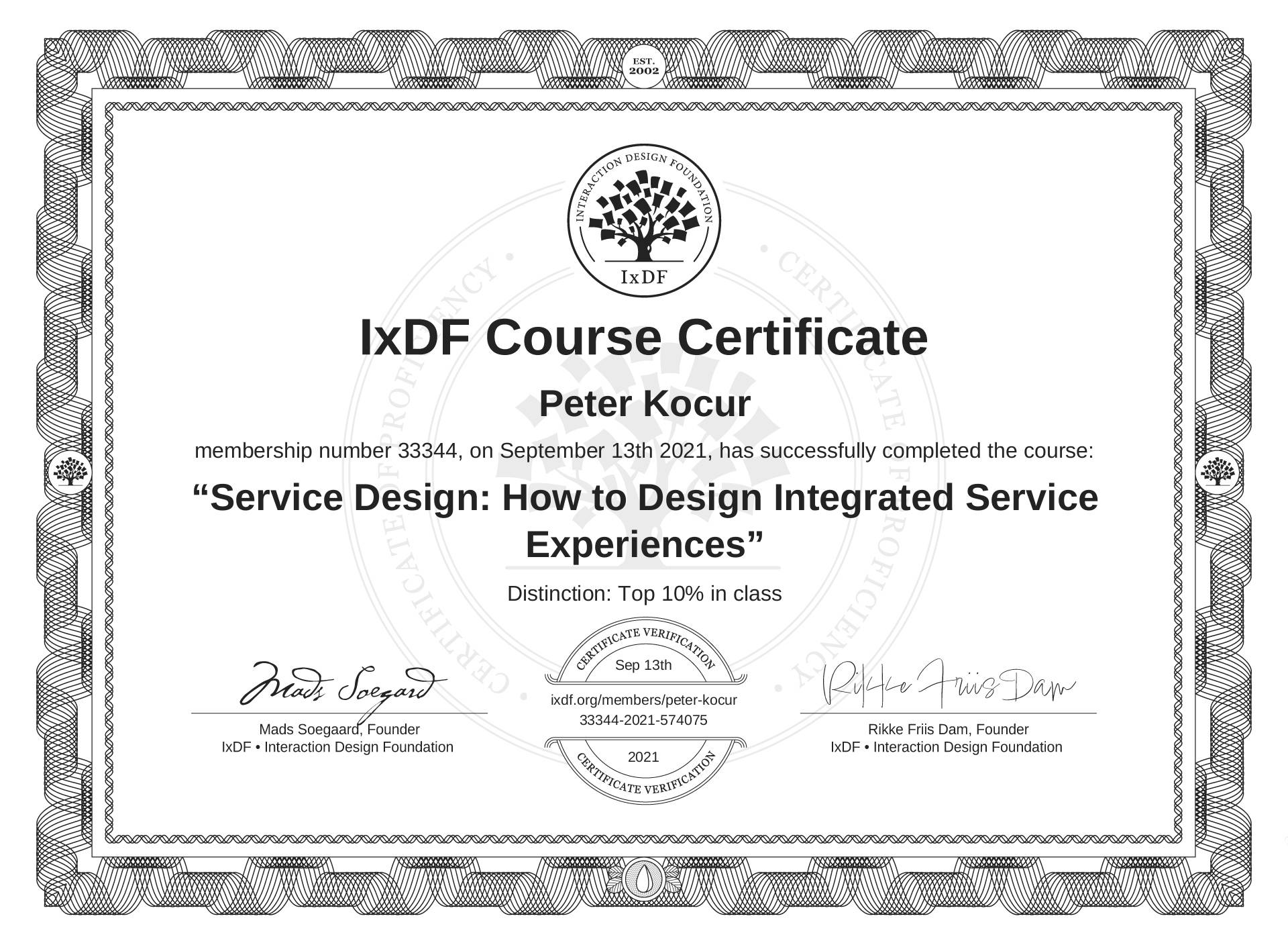 Peter Kocur's IxDF Course Certificate: Service Design: How to Design Integrated Service Experiences