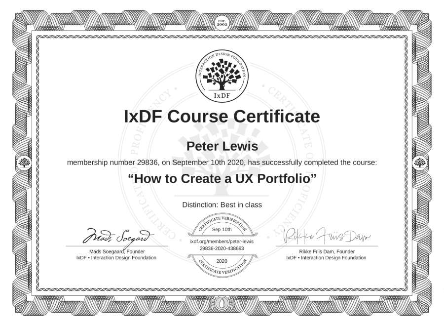 Peter Lewis's IxDF Course Certificate: How to Create a UX Portfolio