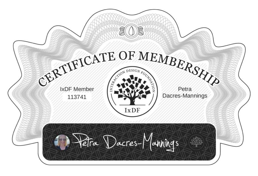 Page URL: https://www.interaction-design.org/members/petra-dacres-mannings/certificate/membership/mc_RHqDn2nJc
