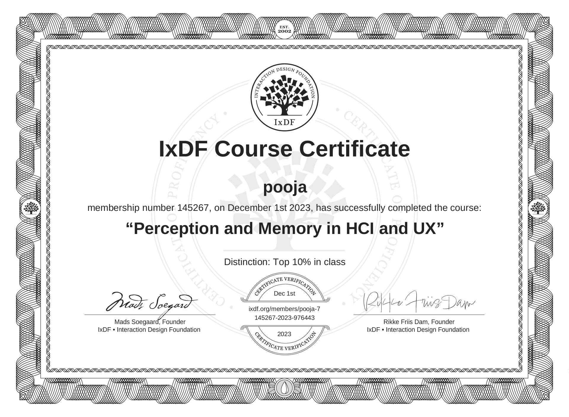 pooja's IxDF Course Certificate: Perception and Memory in HCI and UX