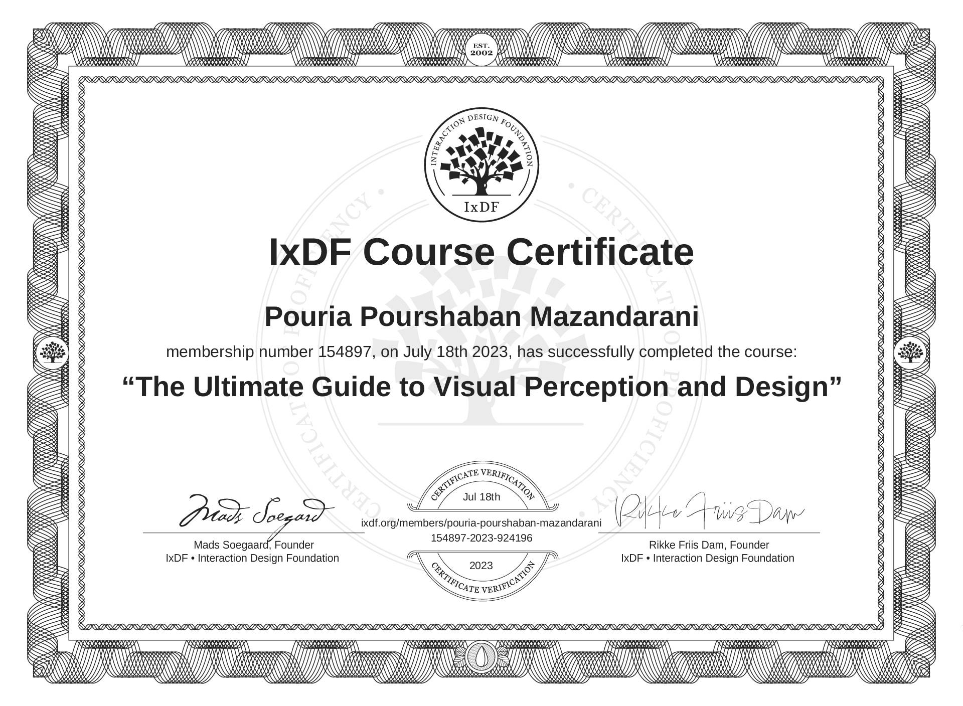 Pouria Pourshaban Mazandarani's IxDF Course Certificate: The Ultimate Guide to Visual Perception and Design