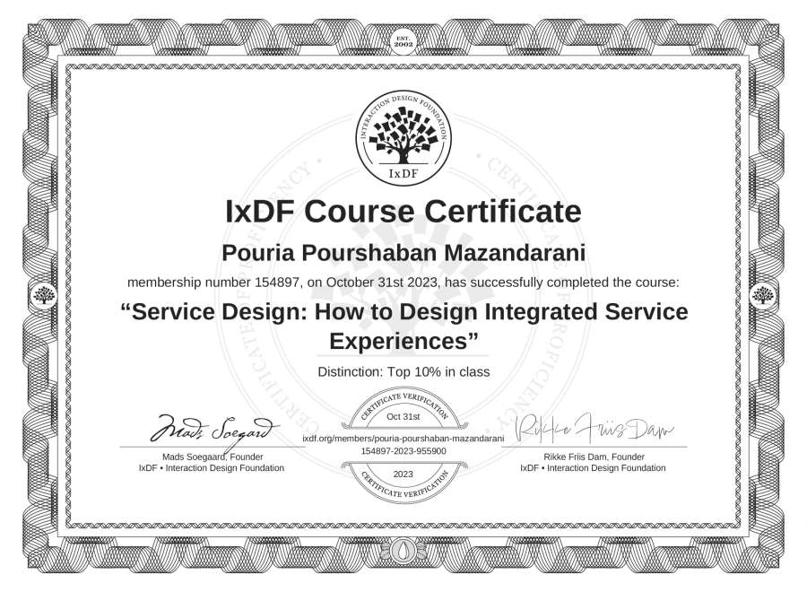 Pouria Pourshaban Mazandarani's IxDF Course Certificate: Service Design: How to Design Integrated Service Experiences