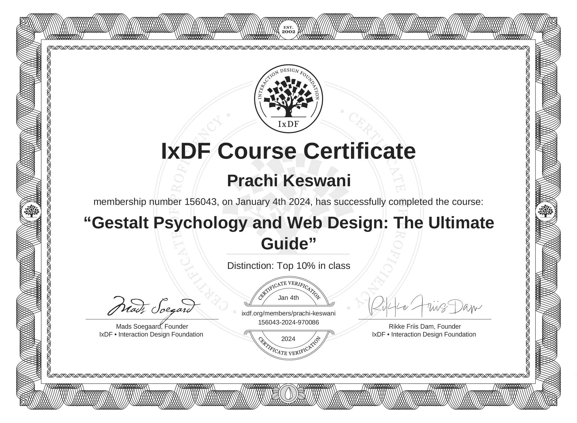 Prachi Keswani's IxDF Course Certificate: Gestalt Psychology and Web Design: The Ultimate Guide
