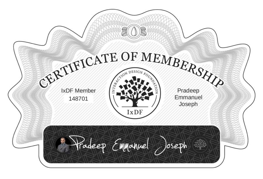 Pradeep Emmanuel Joseph: IxDF Membership Certificate