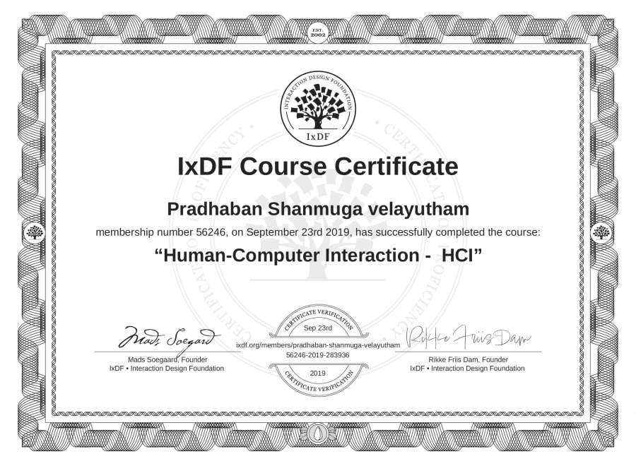 Pradhaban Shanmuga velayutham's IxDF Course Certificate: Human-Computer Interaction - HCI