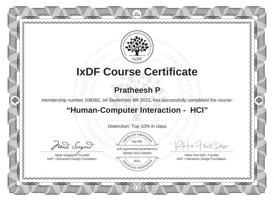 Pratheesh P's IxDF Course Certificate: Human-Computer Interaction - HCI