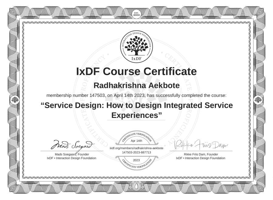 Radhakrishna Aekbote's IxDF Course Certificate: Service Design: How to Design Integrated Service Experiences