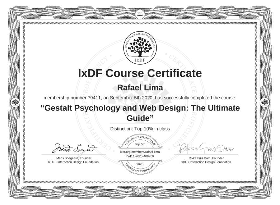 Rafael Lima's IxDF Course Certificate: Gestalt Psychology and Web Design: The Ultimate Guide