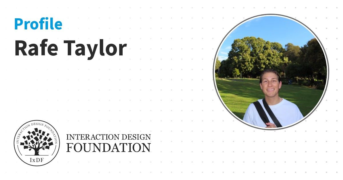 IxDF Course Certificates are awarded to Rafe Taylor in formal recognition of their coursework surpassing the rigorous benchmarks of exceptional performance established by the IxDF Educational Codex.