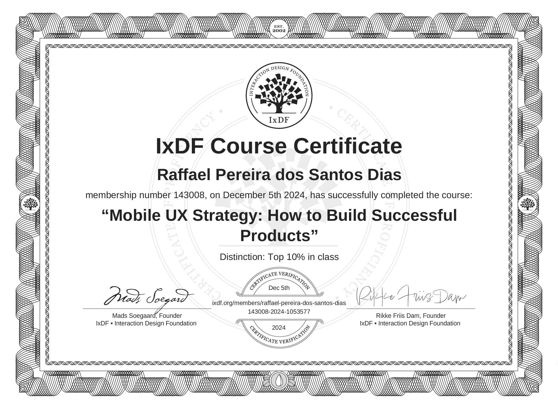 Raffael Pereira dos Santos Dias's IxDF Course Certificate: Mobile UX Strategy: How to Build Successful Products