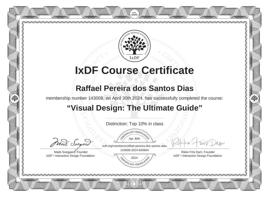 Raffael Pereira dos Santos Dias's IxDF Course Certificate: Visual Design: The Ultimate Guide