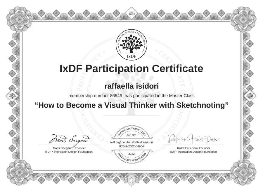 raffaella isidori's IxDF Masterclass Certificate: How to Become a Visual Thinker with Sketchnoting