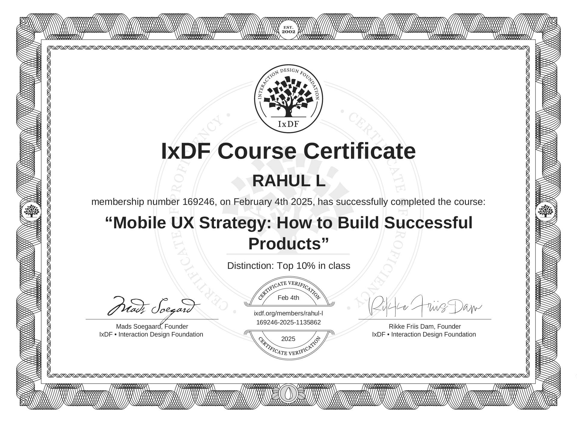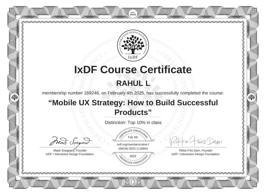 RAHUL L's IxDF Course Certificate: Mobile UX Strategy: How to Build Successful Products