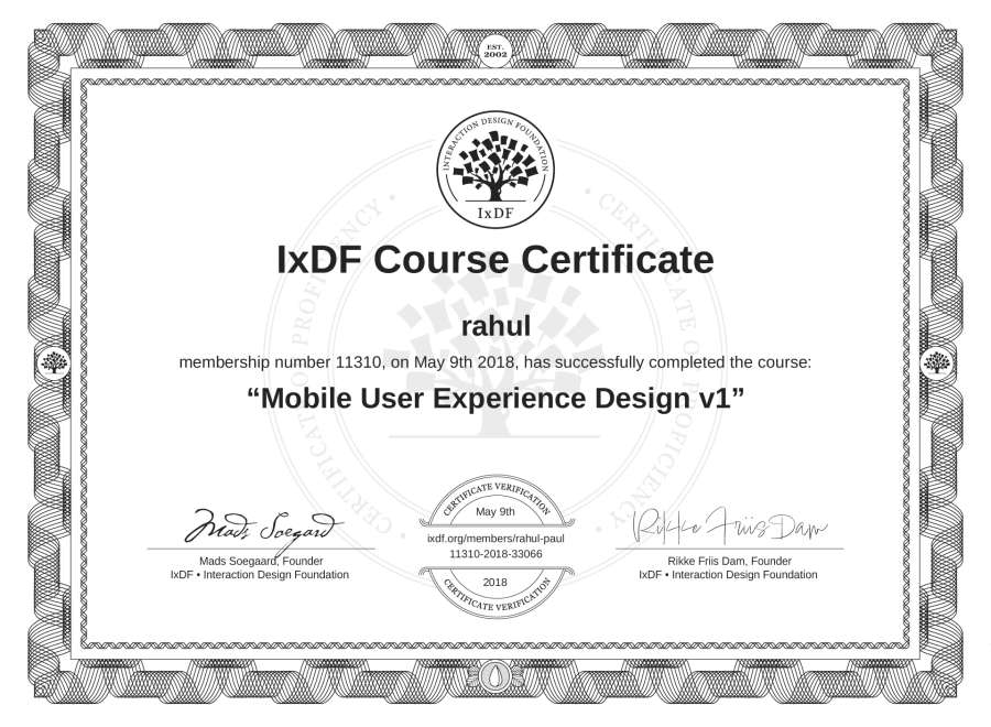 rahul's IxDF Course Certificate: Mobile User Experience Design v1