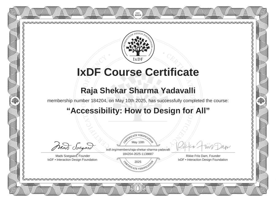 Raja Shekar Sharma Yadavalli's IxDF Course Certificate: Accessibility: How to Design for All