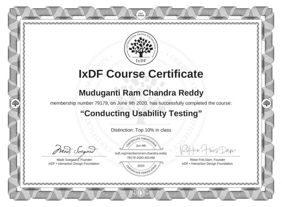 Muduganti Ram Chandra Reddy's IxDF Course Certificate: Conducting Usability Testing
