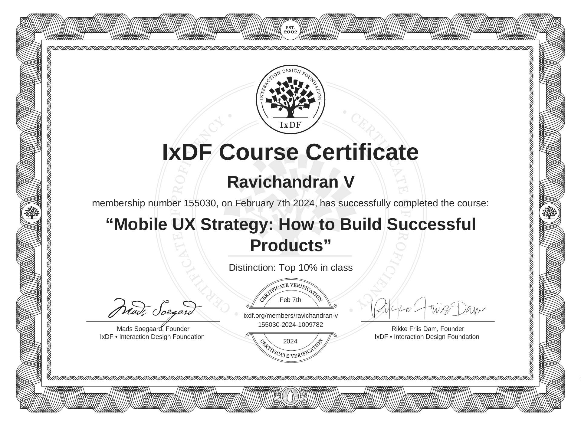 Ravichandran V's IxDF Course Certificate: Mobile UX Strategy: How to Build Successful Products