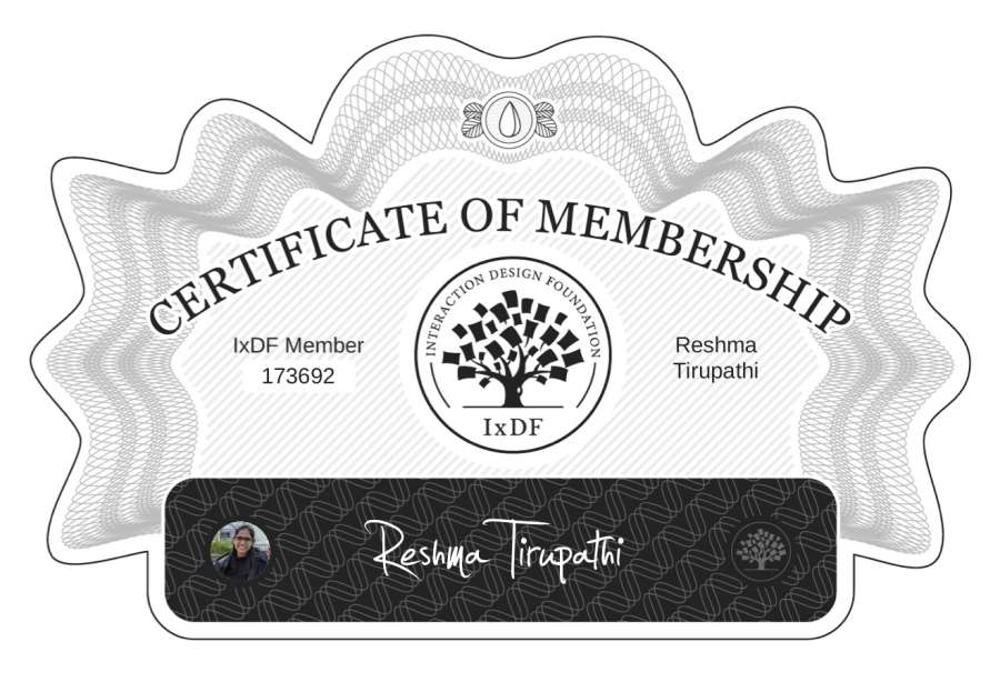 Reshma Tirupathi: IxDF Membership Certificate